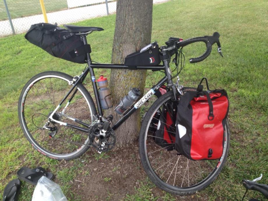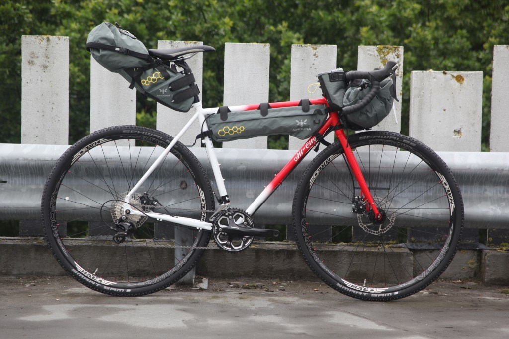จักรยาน All-City รุ่น Macho Man เป็นจักรยานประเภท Cyclo-Cross สามารถปั่นได้บนพื้นถนนที่หลากหลาย นำมาใช้เป็นจักรยานทัวร์ริ่ง โดยใส่กระเป๋าจักรยานแบบ Frame Packing ของ Apidura สามารถขนสัมภาระได้จำนวนมาก