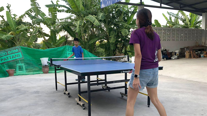 ช่วงเวลาประมาณ 6 โมงครึ่ง ไปจนถึง 2 ทุ่มกว่า ๆ จะเป็นเวลาที่ผมพาลูก ๆ ออกกำลังกาย ไม่ว่าจะเป็นการวิ่ง การยกน้ำหนักฝึกกล้ามเนื้อ และปิงปองก็เป็นหนึ่งในกิจกรรมกีฬา