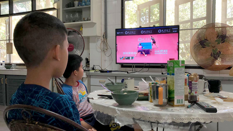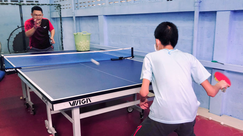 ล๊อคดาวน์เนื่องจากโรคระบาด เด็ก ๆ ต้องเรียนออนไลน์ 100% ไม่มีโอกาสได้ไปโรงเรียน ไม่ได้เจอเพื่อน ๆ และไม่ได้ไปชมรมปิงปอง – การที่เด็กต้องเรียนออนไลน์ อยู่กับหน้าจอคอมพิวเตอร์ หรือ iPad ทำให้ผมรู้สึกเป็นห่วงว่าเด็กจะอยู่กับหน้าจอคอมพิวเตอร์ หรือ iPad มากเกินไป อยู่แต่ในห้อง ผมจึงจัดเวลาให้ลูก ๆ ของผมต้องออกนอกห้อง มาออกกำลังกายกัน